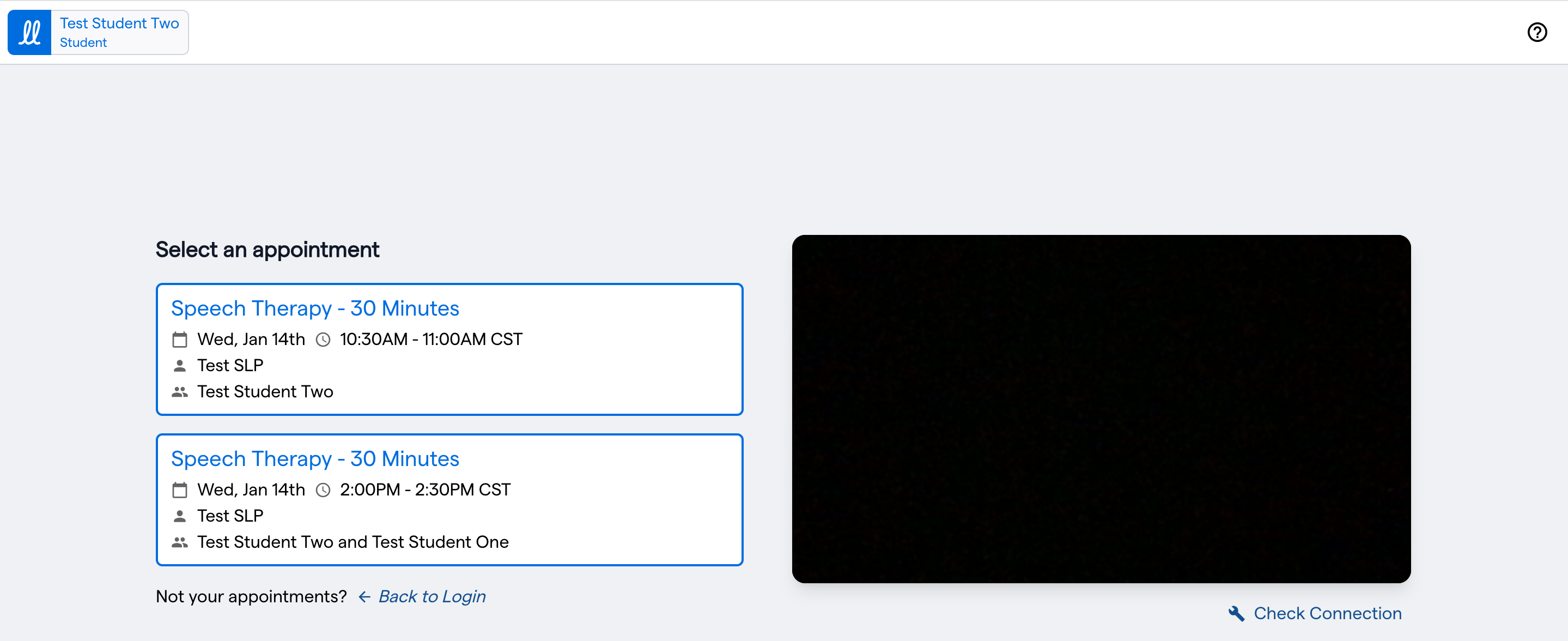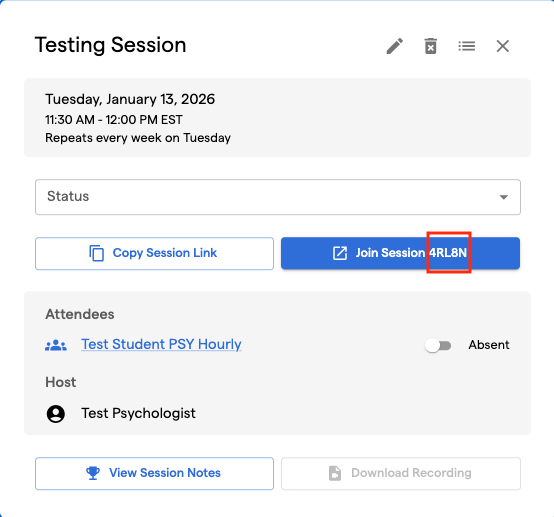 Once you click on the student short code, the session waiting room will prompt you to select a session for that student. This waiting room will show any sessions the student is a part of that day.